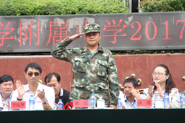 唐滢教授对我校2017级新生军训阅兵式暨开学典礼的召开表示祝贺,充分认可了农大附中办学六年来取得的成绩,并寄语农大附中的孩子们,祝愿孩子们成长为能够欣赏美、创造美的新时期栋梁之才!