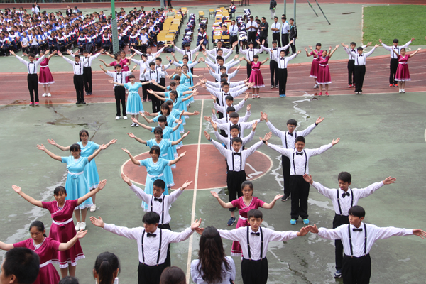 丁春和校长检阅学生方队